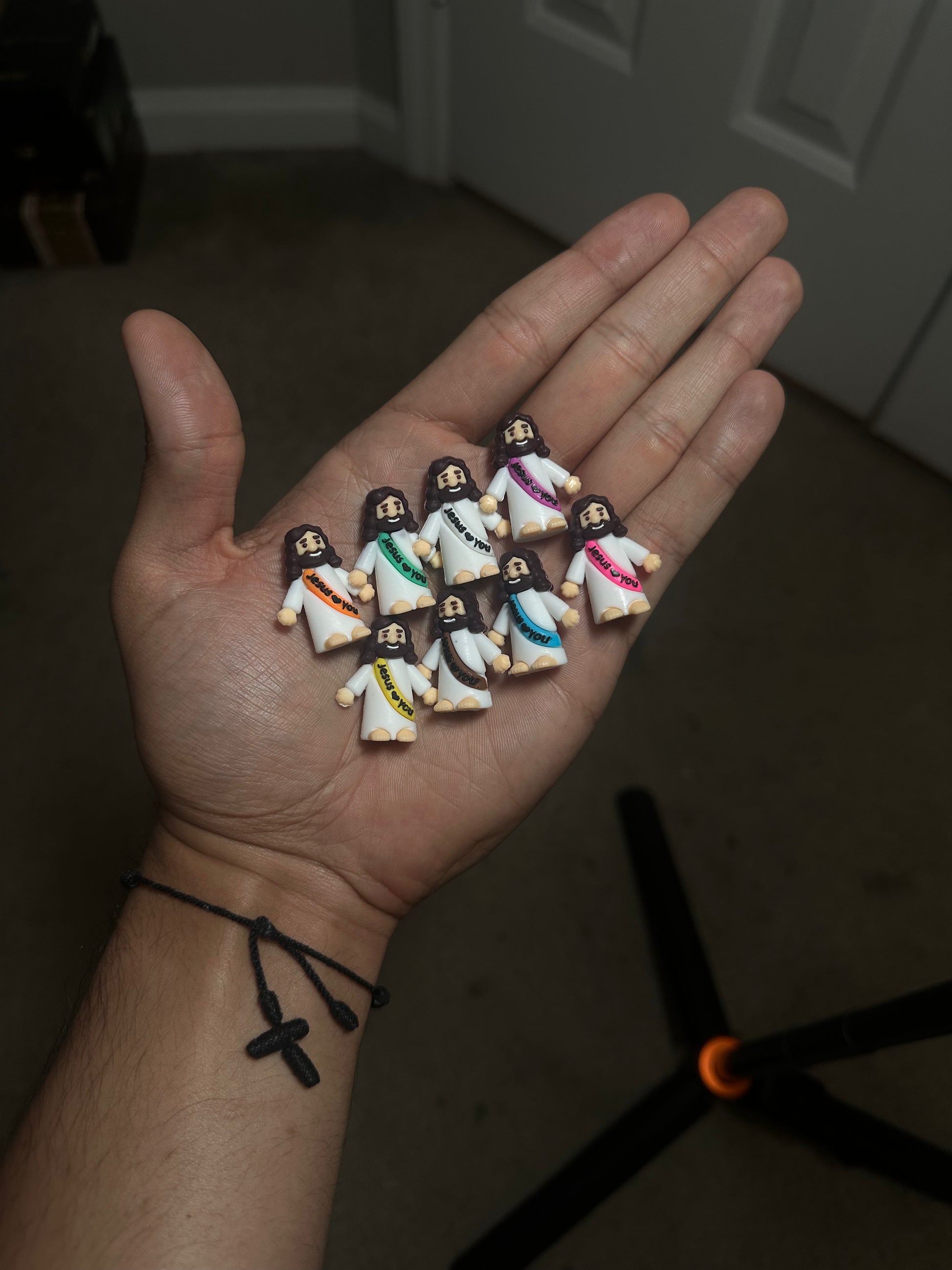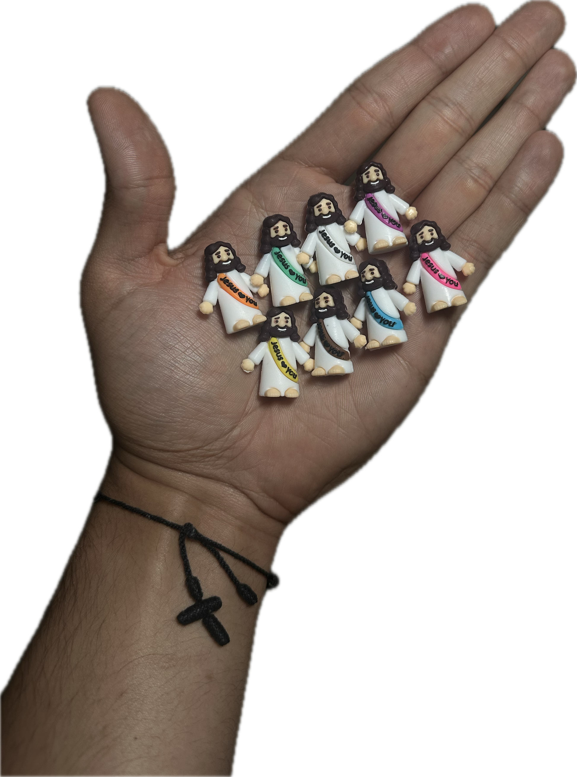 These mini silicone figures feature a small Jesus design with a ribbon that reads “Jesus Loves You.” Each figure is about 1 inch tall — the perfect size to keep in your pocket, on your desk, in your car, or to share with a friend.